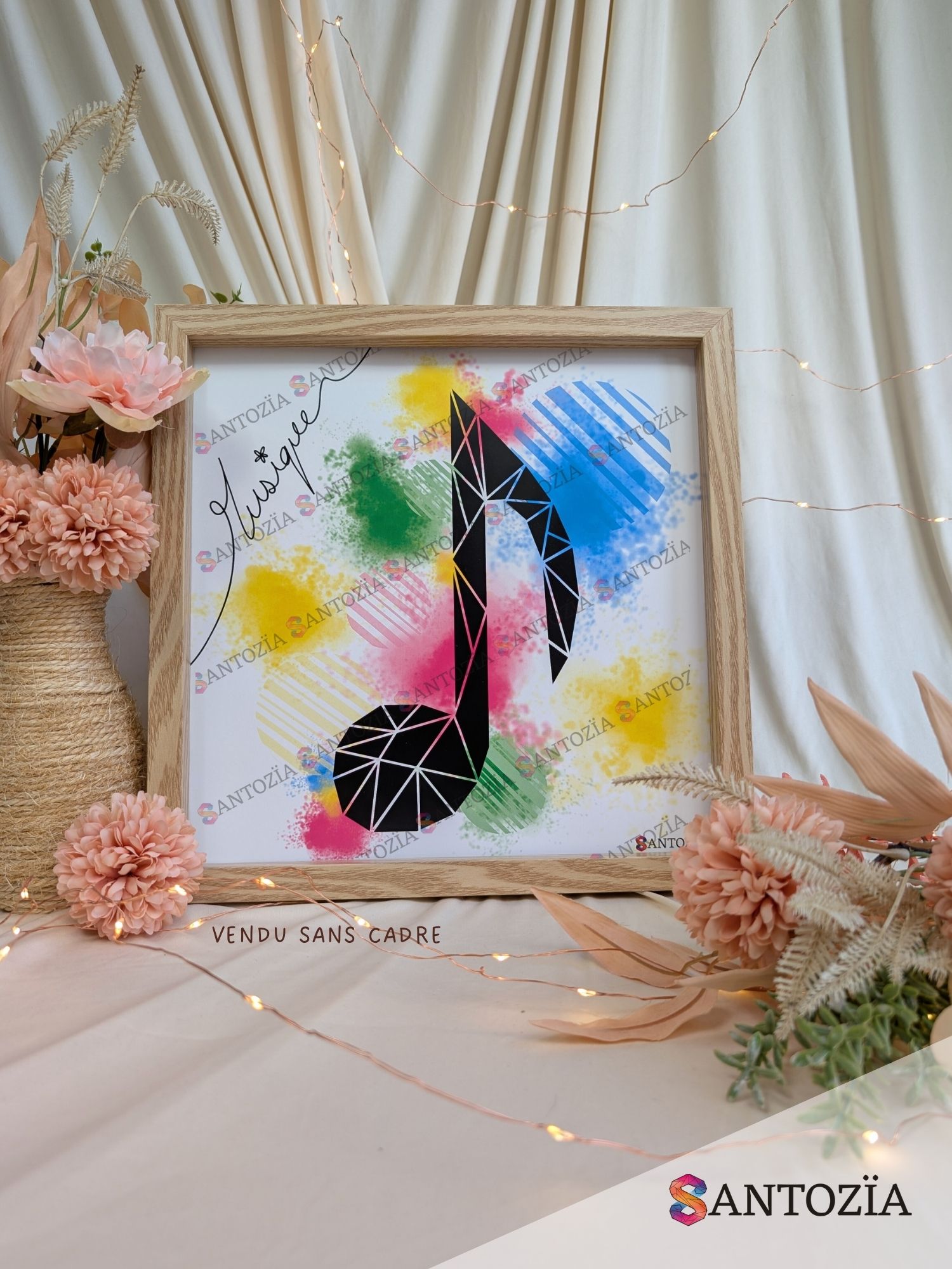 L’affiche Note de Musique Origami célèbre la passion pour la musique et l’expression artistique. Sa forme géométrique et stylisée, associée à des couleurs éclatantes (jaune, vert, bleu et rose), transmet énergie, créativité et joie de vivre. La note de musique, symbole universel d’harmonie et de liberté, devient ici une véritable œuvre décorative contemporaine.