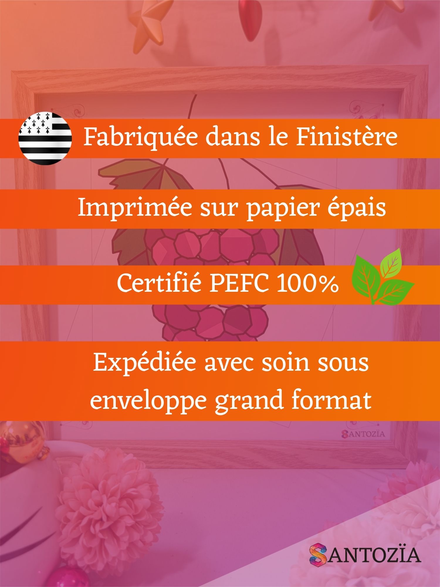 Imprimée en Bretagne sur papier 250 g/m², cette affiche est livrée sans cadre, dans un emballage soigné et écoresponsable. Les encres sont éclatantes, durables et respectueuses de l’environnement.